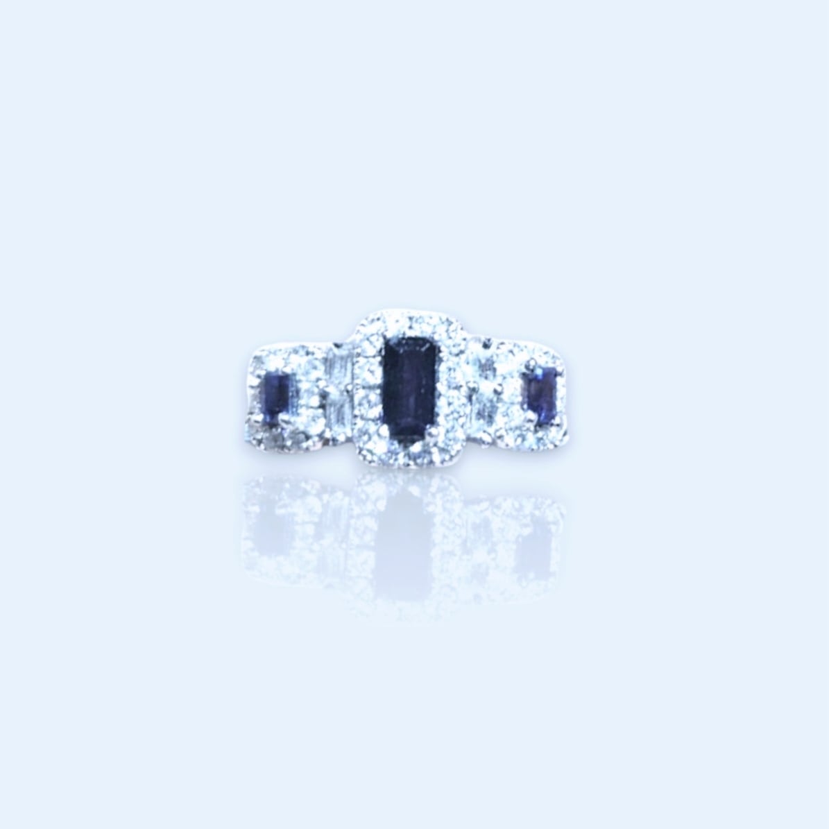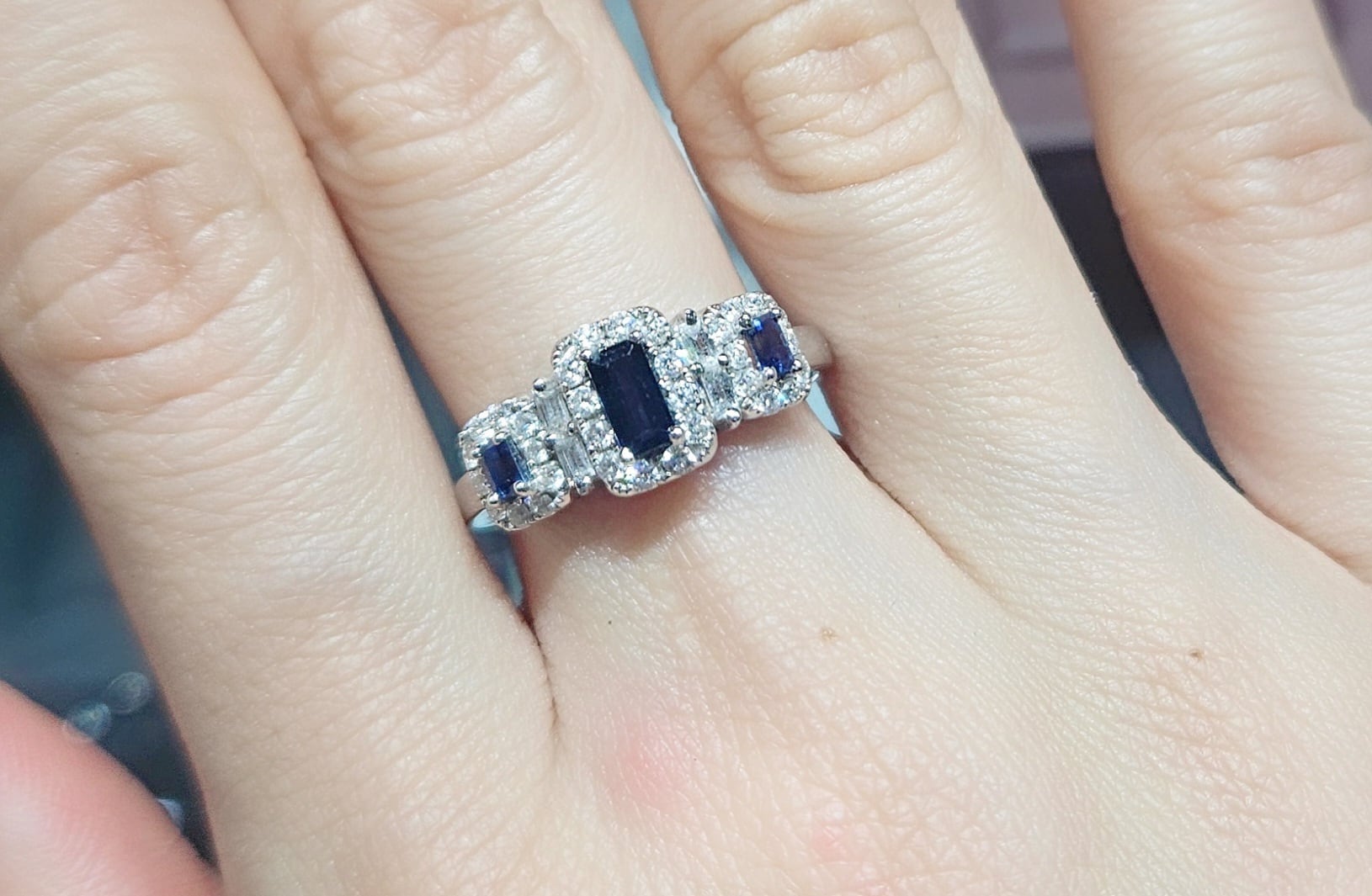 ♢美しいブルーサファイアを3個贅沢にダイヤで囲んだ指輪