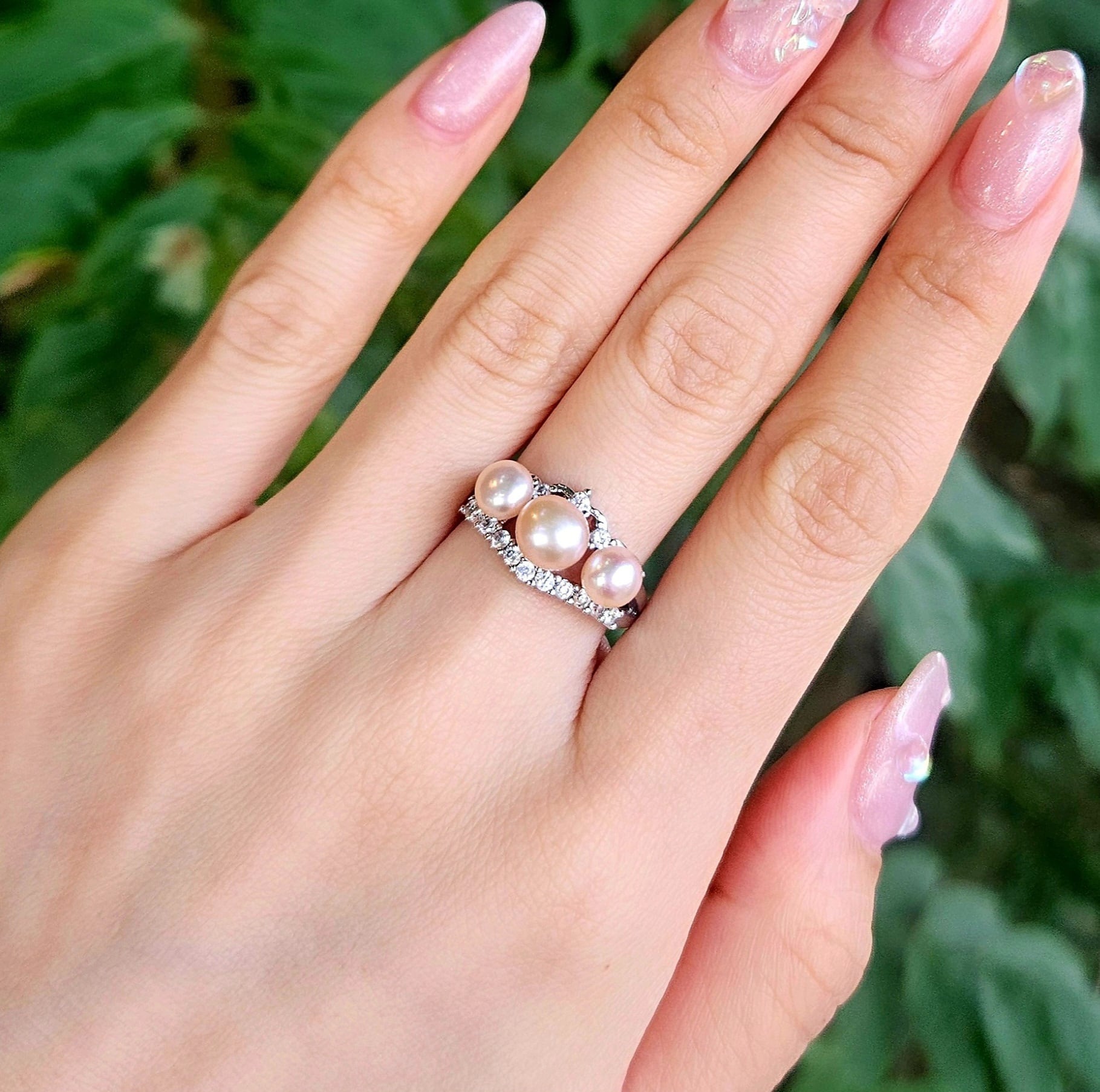 ♢優雅な王冠デザインに、3つの美しいパールを使用した指輪