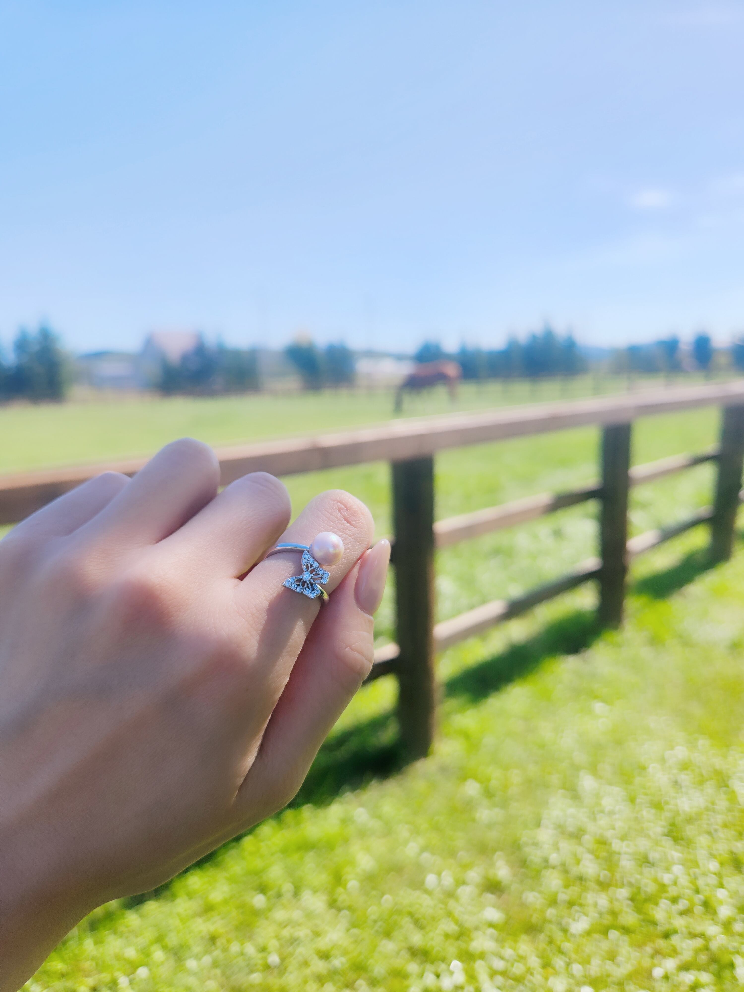 ♢美しいパールと可愛らしい蝶々のデザインが特徴の指輪